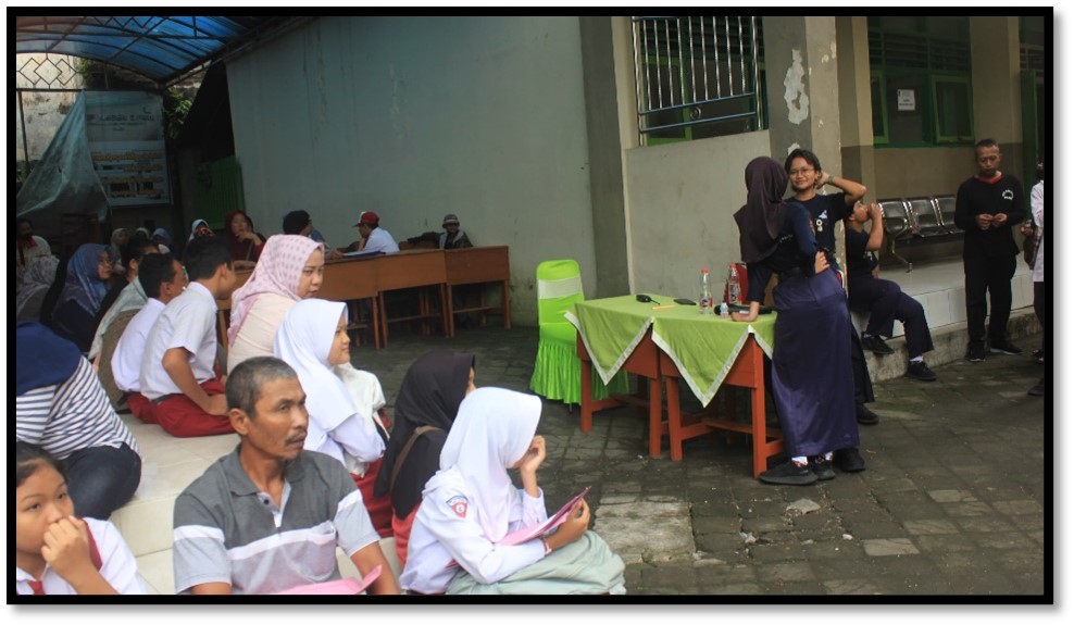 Ketika setiap wali murid dan siswa masuk melalui pintu gerbang utama mereka akan diberi nomor urut, yang dimana nomor itu digunakan pengecekan berkas yang ada di depan teras sekolah. Mereka akan dipanggil satu demi satu nomor antrian yang mereka dapat masing masing.